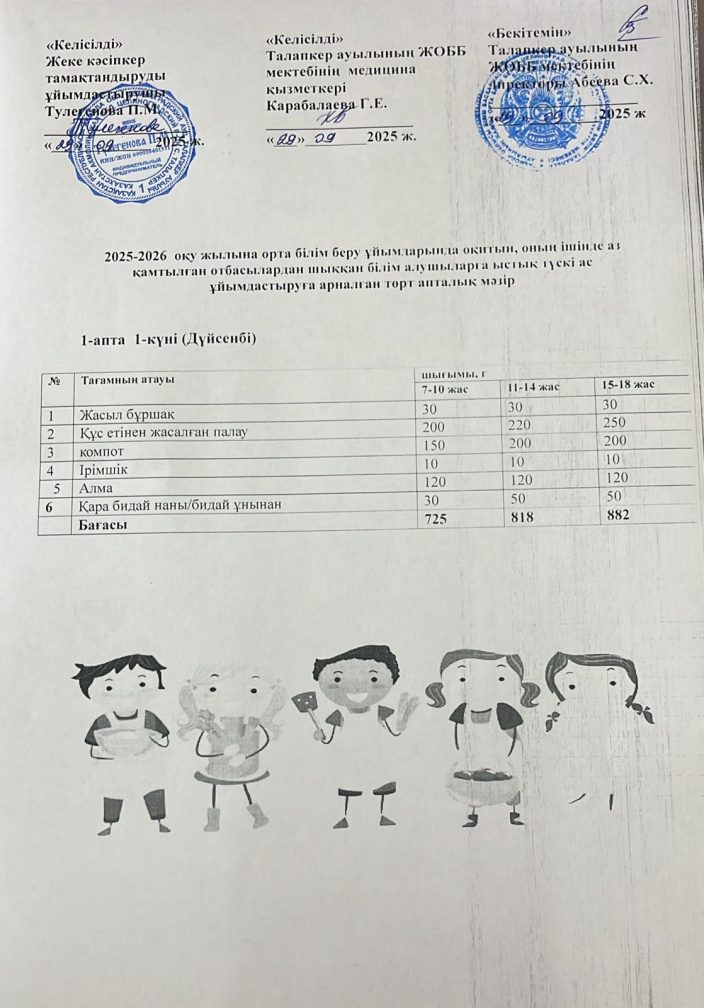 Ас мәзірі 29.09.2025